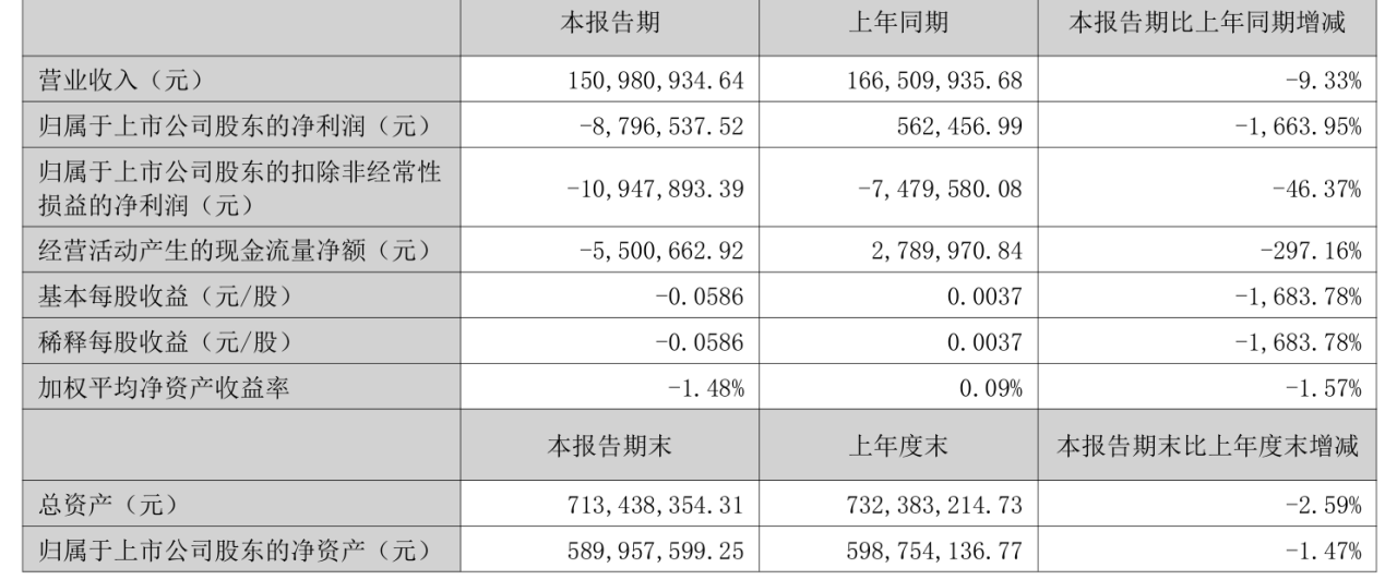 中国经济网北京9月22日讯锦盛新材(维权)(300849.SZ)近日披露2025年半年度报告。2025年上半年易多投资,公司实现营业收入1.51亿元,同比下降9.33%;归属于上市公司股东的净利润为-879.65万元,上年同期56.25万元;归属于上市公司股东的扣非净利润为-1094.79万元,上年同期为-747.96万元;经营活动产生的现金流量净额为-550.07万元,上年同期为279.00万元。